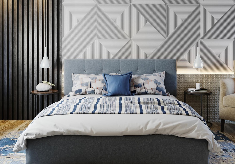 เทรนด์การแต่งห้องด้วยลายกราฟิก ทำให้ห้องของคุณมีลูกเล่นมากขึ้น สามารถสร้างความสนุกสนานและความมีชีวิตชีวาให้กับห้องได้ เมื่อนำห้องสีเทาที่มีความหรูหรา และลายกราฟิกที่สวยงามมารวมกัน จะทำให้ห้องของคุณดูทันสมัยและเท่มากขึ้นด้วย